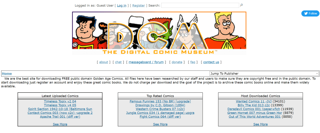Como se indica en su cuenta de Twitter, Digital Comic Museum ofrece un catálogo de más de veinte mil cómics, pero, cada semana, la web se actualiza con nuevos números.