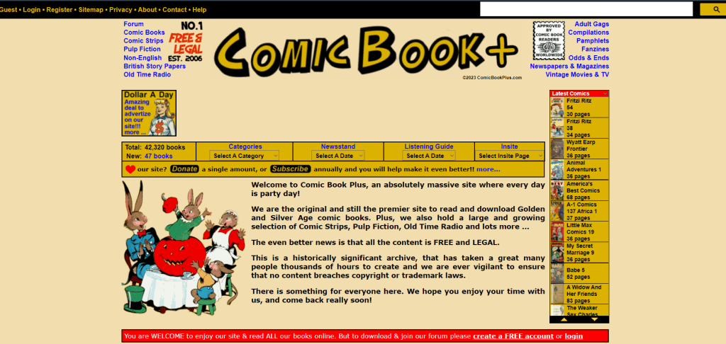 Como la misma página indica, se trata del primer sitio web en el que se empezaron a poder leer cómics de la Edad de Oro y la Edad de Plata de manera legal. Actualmente, cuenta con más de cuarenta y dos mil números disponibles, pero la cifra va aumentando más y más.