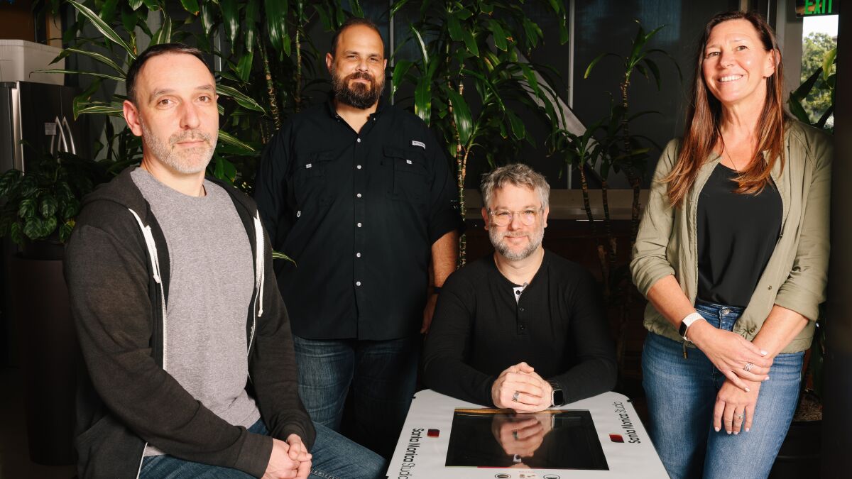 Eric Williams, Matt Sophos, Cory Barlog y Meghan Morgan Juinio promocionando la última entrega, lanzada en 2022