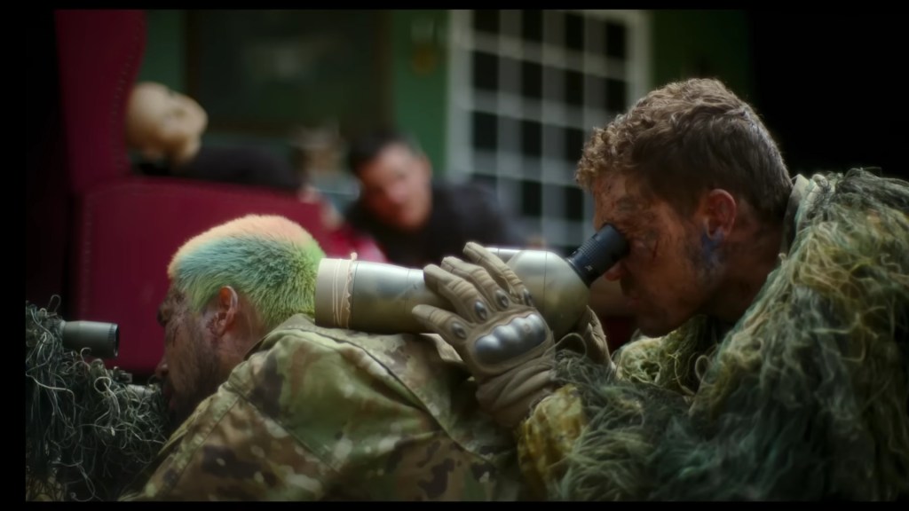 Pero claro, los problemas no acaban ahí, ya que Alex Garland, a diferencia de lo que ocurre en su mejor obra, Ex Machina, realiza una puesta en escena muy pobre en la que, junto con su director de fotografía, toma la decisión de imitar a Zack Snyder en Army of the Dead (2021) al mostrar a los personajes apenas en foco y el resto de la imagen desenfocada de un modo injustificado ya que no es por aislar al protagonista y representar sus emociones como se hacía en Oppenheimer (2023) denotando un descontrol en el apartado fotográfico el cual tiende a replicar aquello que llevamos años viendo, el intento de simular «imagen cinematográfica» por medio de desenfocar el fondo, como si fuera el principal distintivo de la estética del cine.