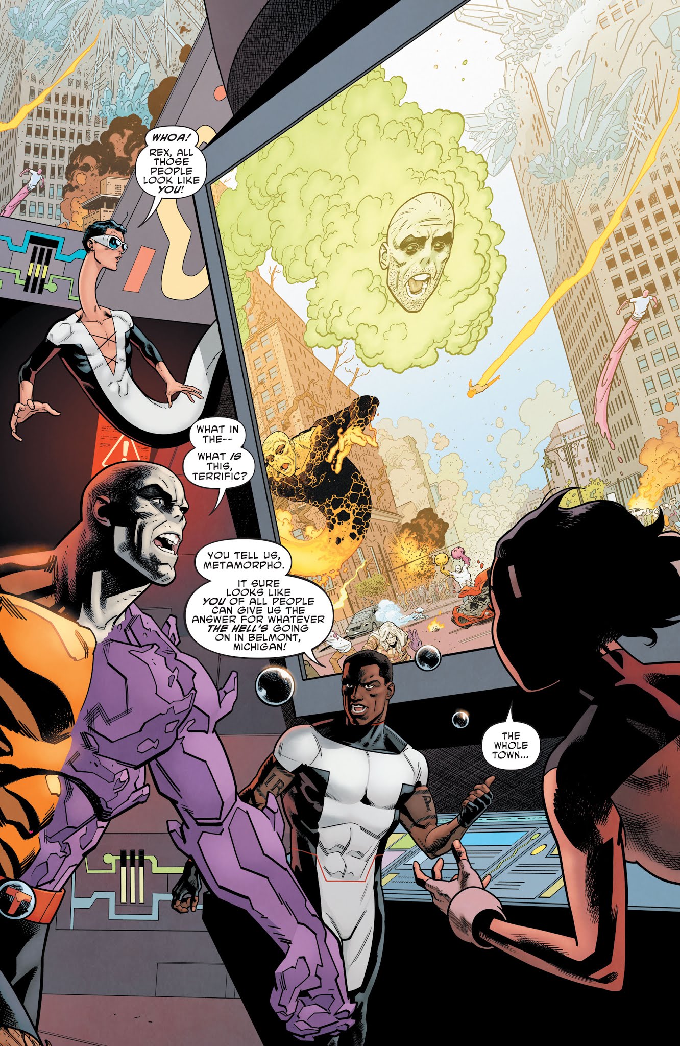 Esta breve historia está conformada por los números 5 y 6 de The Terrifics, grupo al que pertenecen Plastic Man, Phantom Girl, Mister Terrific y, evidentemente, Metamorfo.