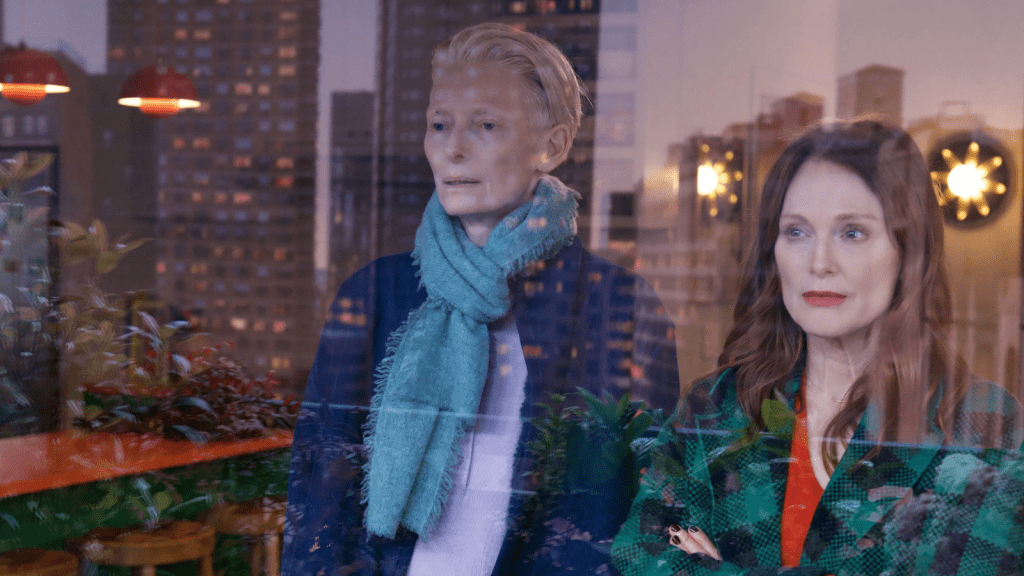 La habitación de al lado es su primer largometraje escrito íntegramente en inglés, aunque, para tranquilidad de muchos, sin perder un ápice de su esencia. Al principio, yo también me mostraba algo escéptico ante esta rareza en la trayectoria de un director que, durante años, rechazó innumerables ofertas de Hollywood por no sentirse preparado para rodar una película en otro idioma que no fuera el español. Sin embargo, el tiempo le ha dado la oportunidad de demostrar que eso no era un obstáculo, como bien se vio en sus más recientes incursiones en el cortometraje: como La voz humana, protagonizado por la enigmática Tilda Swinton, quien también forma parte de esta nueva cinta, y su especial western queer, Extraña forma de vida.