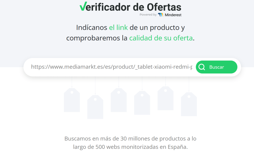 Sin embargo, hay una herramienta muy sencilla de utilizar que ayuda mucho a la hora de saber si realmente vamos a adquirir un producto a buen precio o no. Y esa herramienta es el Verificador de Ofertas. Esta página web creada por Minderest no es sólo cómoda y amigable para el usuario, sino de una inestimable utilidad para conocer si el precio de un producto es realmente irresistible o si estamos cerca de caer en una trampa de marketing de un negocio.