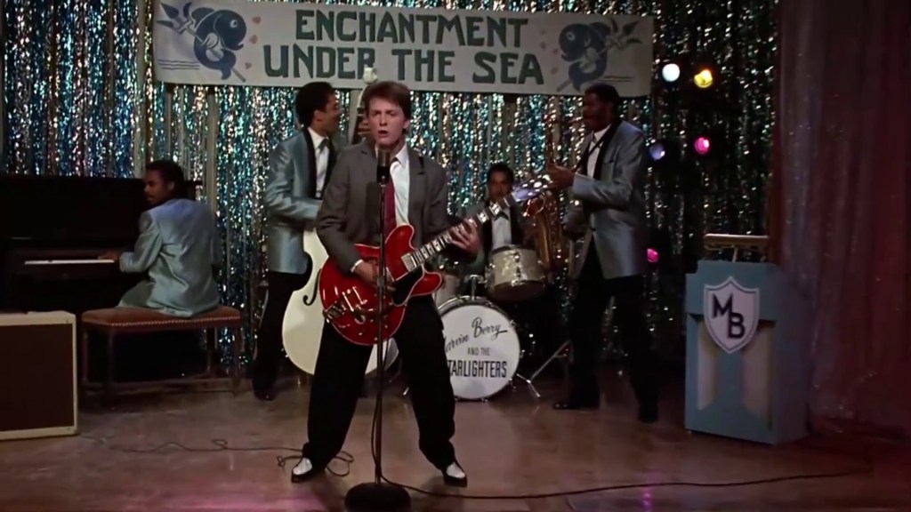 A un lado esto, la ambientación de los años 50 y de los 80 respectivamente está magistralmente hecha. El contraste entre una época y otra, en la ropa, coches, el instituto, e incluso la forma de pensar (especialmente con el tema sexual o de las relaciones románticas). Así, ayuda al espectador a vivir la película y a sentirse como si verdaderamente hubiese habido un viaje en el tiempo. Es prácticamente perfecta, y contrasta mucho con la que vemos al principio de la película en los años 80.